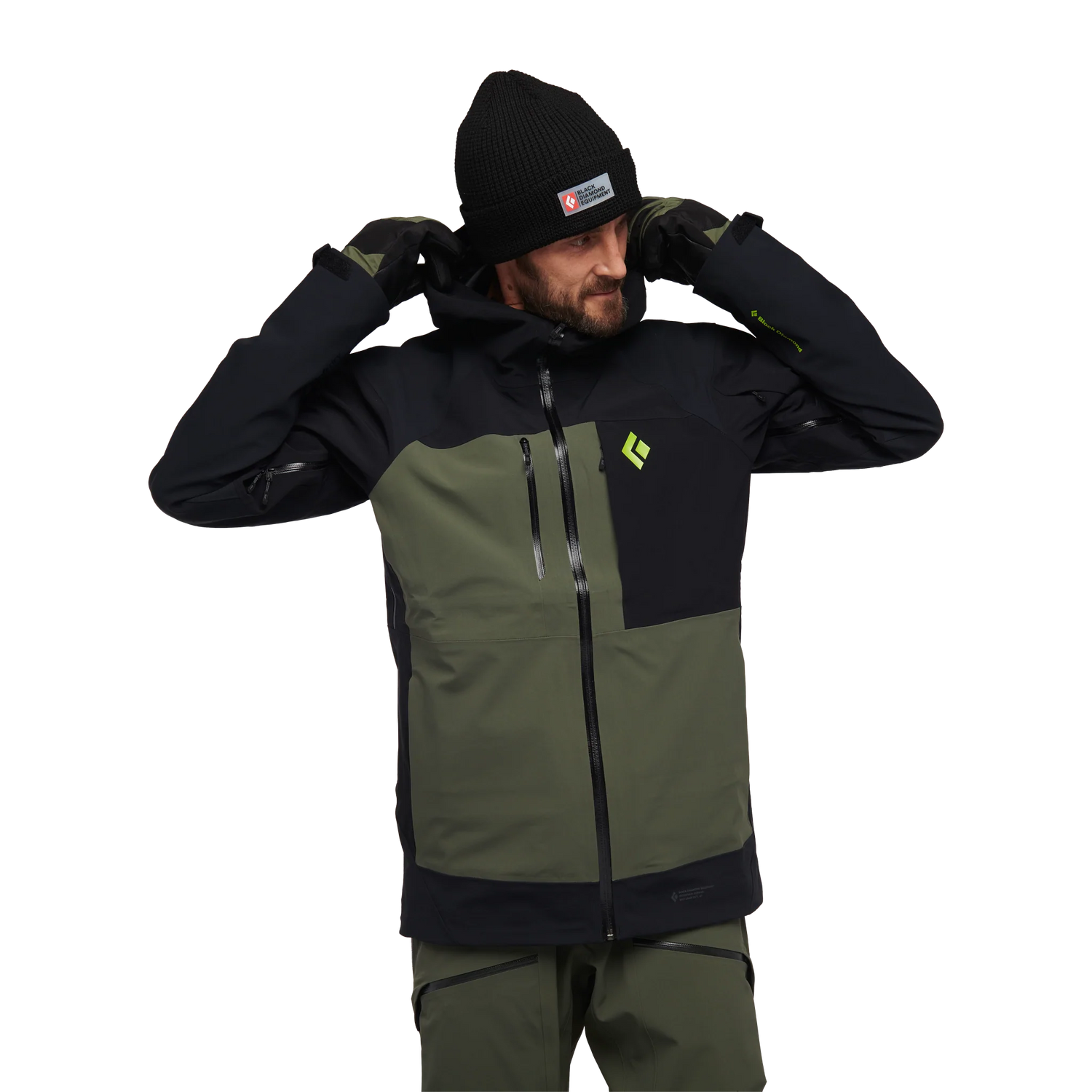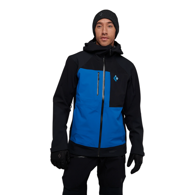 A bomber 3-layer shell built to blend both the movement of four-way stretch with the ultimate protection of BD.dry™ while touring or ducking the rope, the Recon Stretch Pro Shell seals out moisture on storm days but keeps you dry on the skintrack without sacrificing durability. Reinforced forearms, elbows and hips add protection in high-wear areas from packs, tree branches and other on-mountain obstacles. The snow helmet compatible hood and internal removable powder skirt also adds armor against the elements while charging deep in the backcountry.