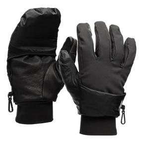 For ski touring, ultra running and other aerobic alpine pursuits through variable terrain and changing conditions, the Black Diamond Wind Hood Softshell Gloves combine a stretchy, highly breathable softshell glove with a stowable, weather-resistant flap hood that quickly deploys when the weather turns south. The mitt-style Pertex® Endurance wind hood is fixed on the thumb and easily rolls up and hides away in mild weather. PrimaLoft® Gold insulation helps combat chilly alpine temps, and the patterned grip palm provides a firm grasp on poles and other essentials.