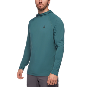 A technical fit paired with a highly protective fabric, the Black Diamond Alpenglow Hoody is a proven BD style which offers coverage on desert multi pitches, high-alpine approaches and hot crag sessions. With UPF 50+ and BD.cool mineral based in-fiber cooling technology, which reflects 71% of near-infrared rays and reduces wearer’s temperature. A layer of protection to your arsenal, with an under-the-helmet hood and pullover design, plus Polygiene odor control, the Alpenglow hoody offers the ultimate in performance and long-wearing comfort.